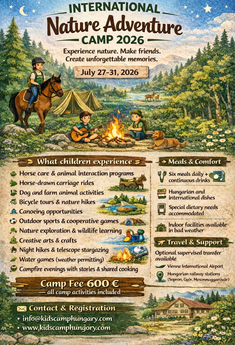 Nestled in the peaceful Hungarian countryside, KidsCampHungary offers a safe and joyful place for kids to grow and play.